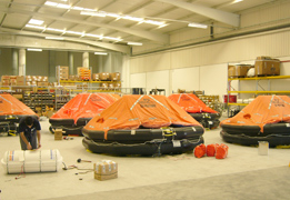 - Inspection of inflatable liferafts, from 4 to 300 people, and inspection of inflatable S.O.S. buoys for recreational vessels.