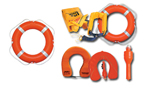 Buoys accessories: Lights for ‘Man overboard’ life buoys with SOLAS approval. Safety system Life-Link with buoy and floating rope for ‘manoverboard’ recovery. Stainless steel or plastic support for circular or horseshoe lifebuoys.